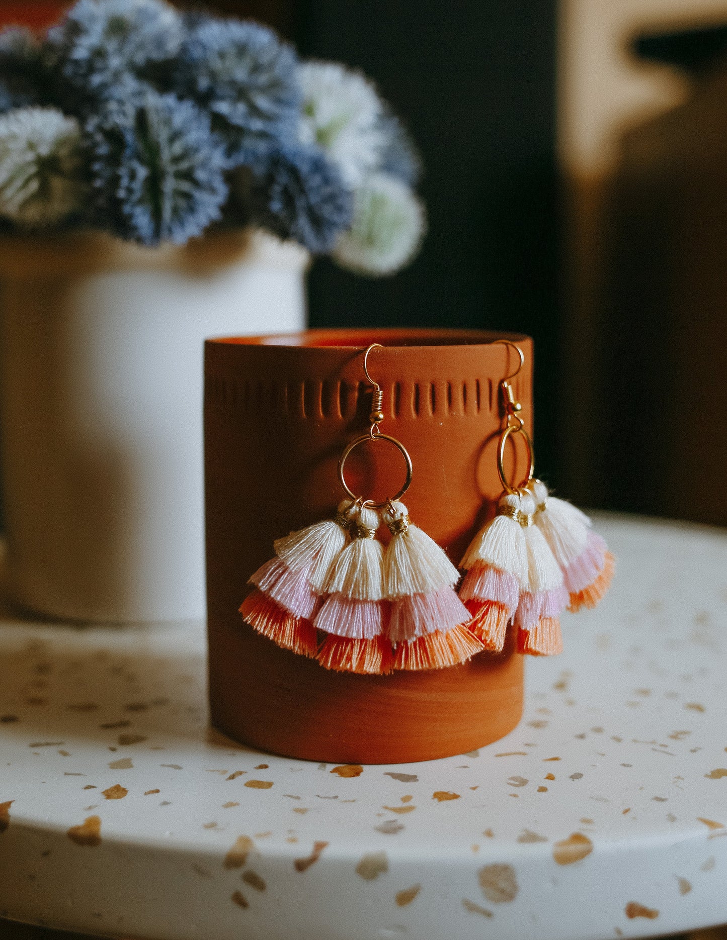 Mini Tassel Earrings - Peach