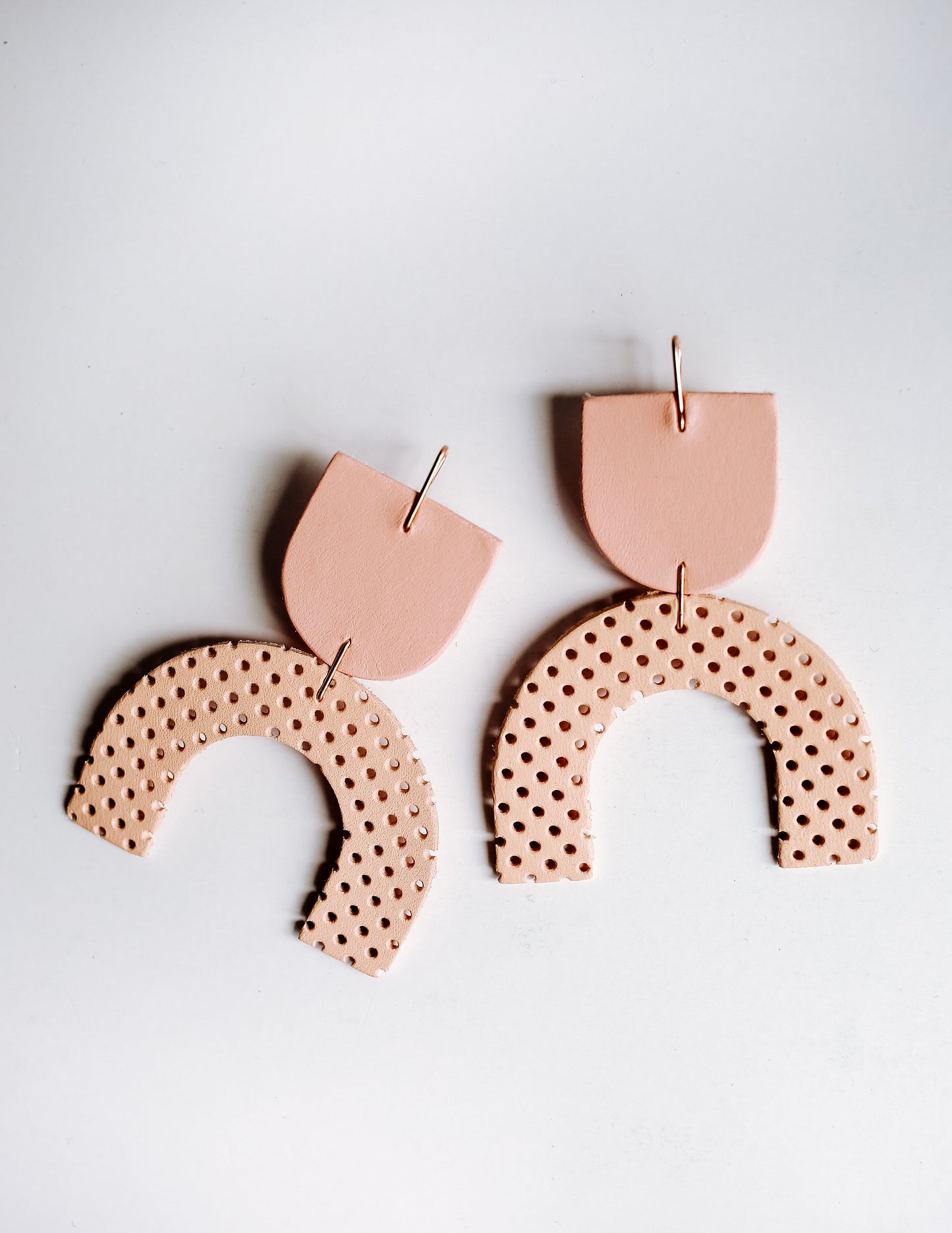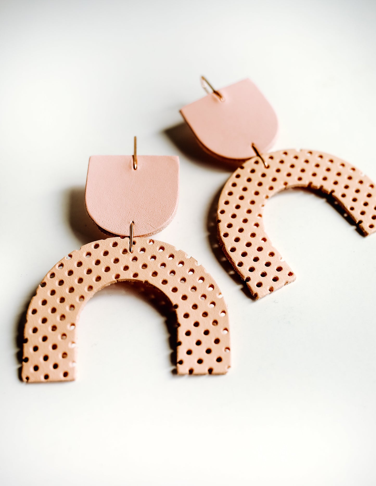 Add Triple Half Moon Earrings - White and Rose to the cart
