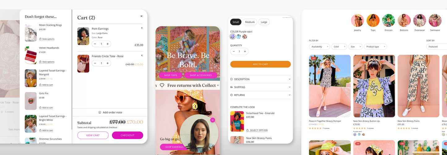 | Flexible, eye-catching layouts | Flexible product gallery styles and product form settings ensure you can put your customers’ focus where you want it - including options for large imagery and zoom! |